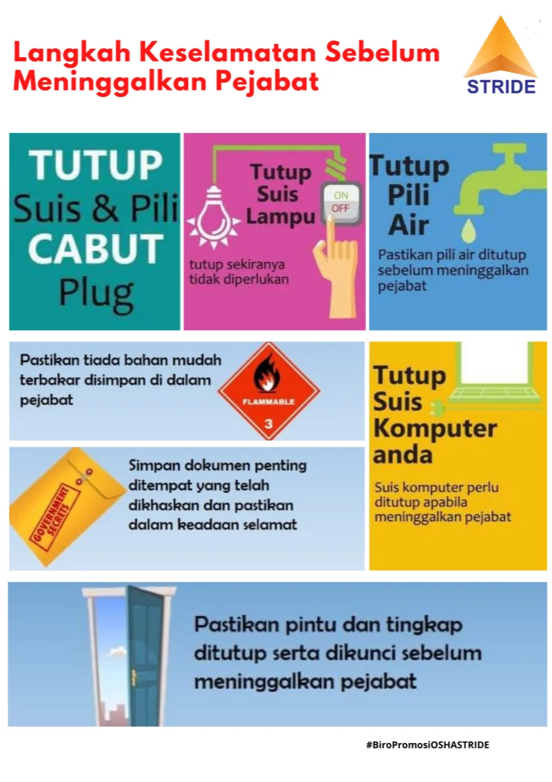 Terdapat beberapa amalan atau keselamatan yang perlu diterap di dalam kawasan atau tempat menjalankan kerja: